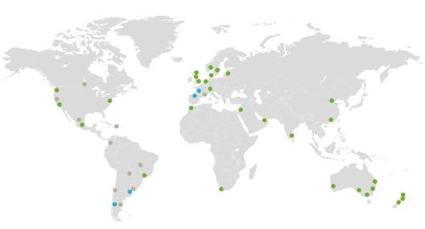 Una de las fortalezas del cuerpo conformado para la realización del estudio es su experiencia internacional acreditable, tanto en el ámbito de los estudios como en el desarrollo de proyectos. En la figura siguiente de sean indicado los países en donde los equipos de las tres empresas cuentan con esta experiencia.